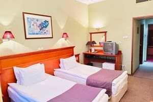 Дети до 5 лет проживают бесплатно, без предоставления отдельного спального места. Наличие и стоимость дополнительного места можно уточнять при бронировании. Предоставление дополнительного места возможно в номере полулюкс (раскладной диван).