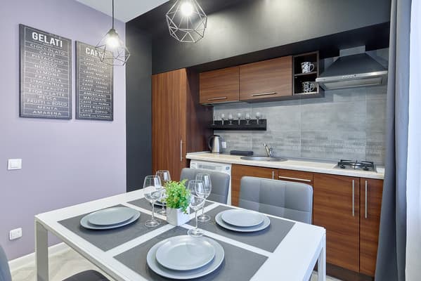 В прекрасном и любимом Киеве, на ул. Большая Васильковская, 54/34 находятся современные апартаменты. Квартира расположилась на девятом этаже, окна открывают панорамные виды на Олимпийский стадион. В апартаментах уютно, удобно и комфортно. Они обустроены мебелью, кондиционером, телевизором, бесплатным Интернет доступом. В ванной комнате предусмотрены наборы косметических средств, полотенца. Гости могут воспользоваться феном, стиралкой, электрочайником, микроволновкой. Кухонная зона располагает: холодильником, плитой, посудой для самостоятельного приготовления вкусной еды. Преимущества квартиры: • она находится в доме под охраной; • парковка для собственного транспорта охраняется круглосуточно. В шаговой доступности гости найдут кафе, рестораны, супермаркеты. Внимание: регистрация и поселение происходит по адресу: ул. Лютеранская, 6б, офис 40 с 10.00 до 19.00.